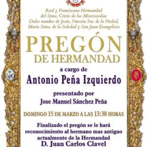 HERMANDAD CRISTO DE LAS MISERICORDIAS. PREGÓN DE HERMANDAD. A CARGO DE D. ANTONIO PEÑA IZQUIERDO