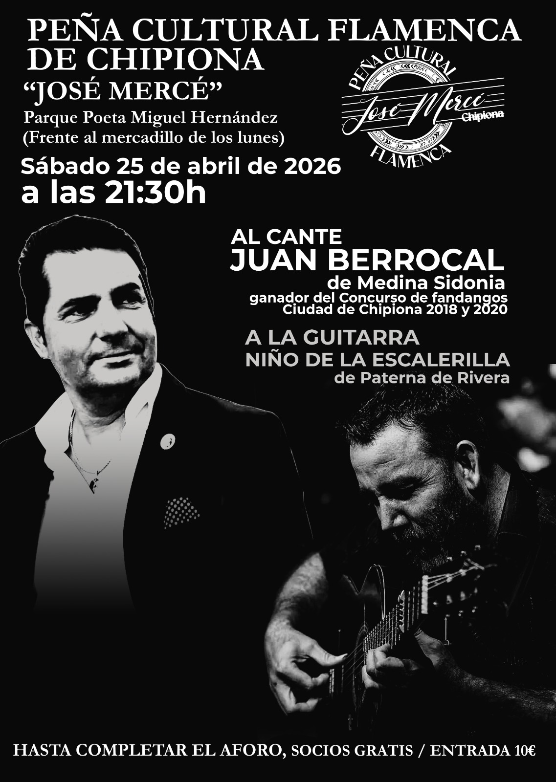 RECITAL FLAMENCO. JUAN BERROCAL (AL CANTE – MEDINA SIDONIA) Y NIÑO DE LA ESCALERILLA (A LA GUITARRA – PATERNA DE RIVERA)