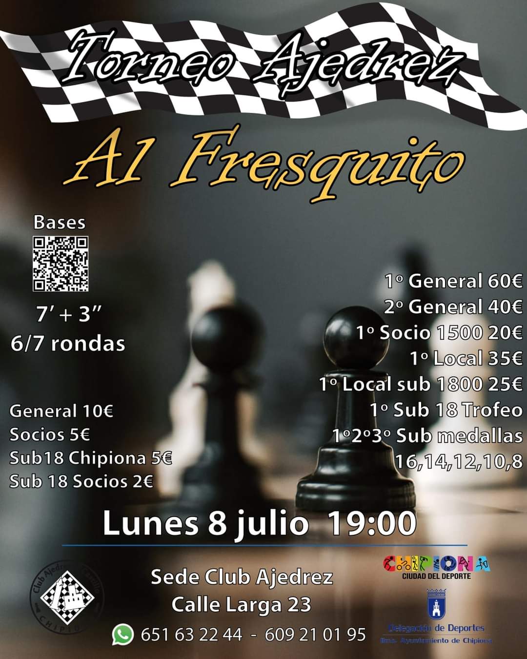 TORNEOS DE AJEDREZ DE JULIO “AL FRESQUITO”. Más información: 651 63 22 44 / 615 08 36 39