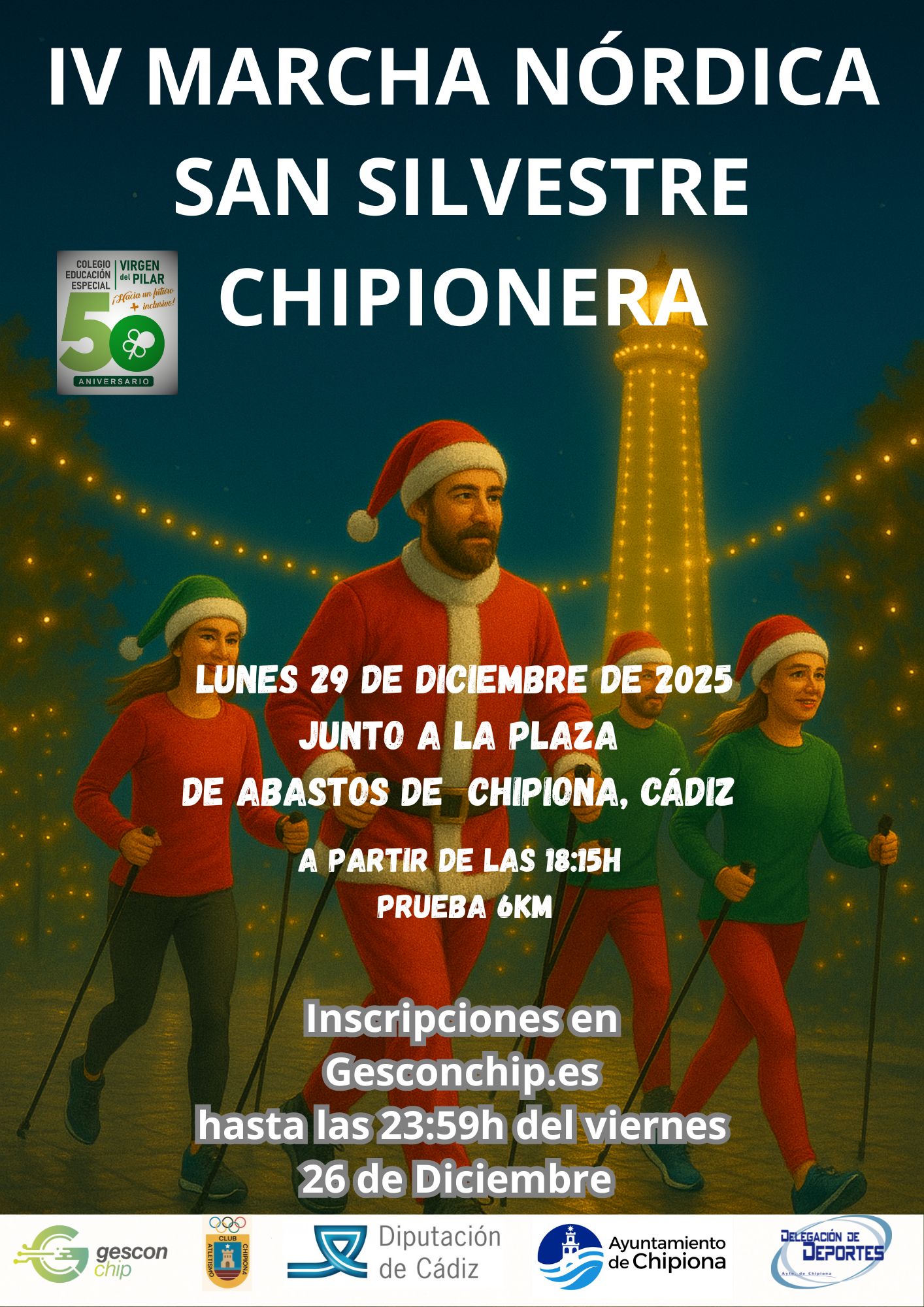 IV MARCHA NÓRDICA SAN SILVESTRE CHIPIONERA. Más información e inscripciones: https://gesconchip.es (hasta las 23:59 del viernes 26 de diciembre)
